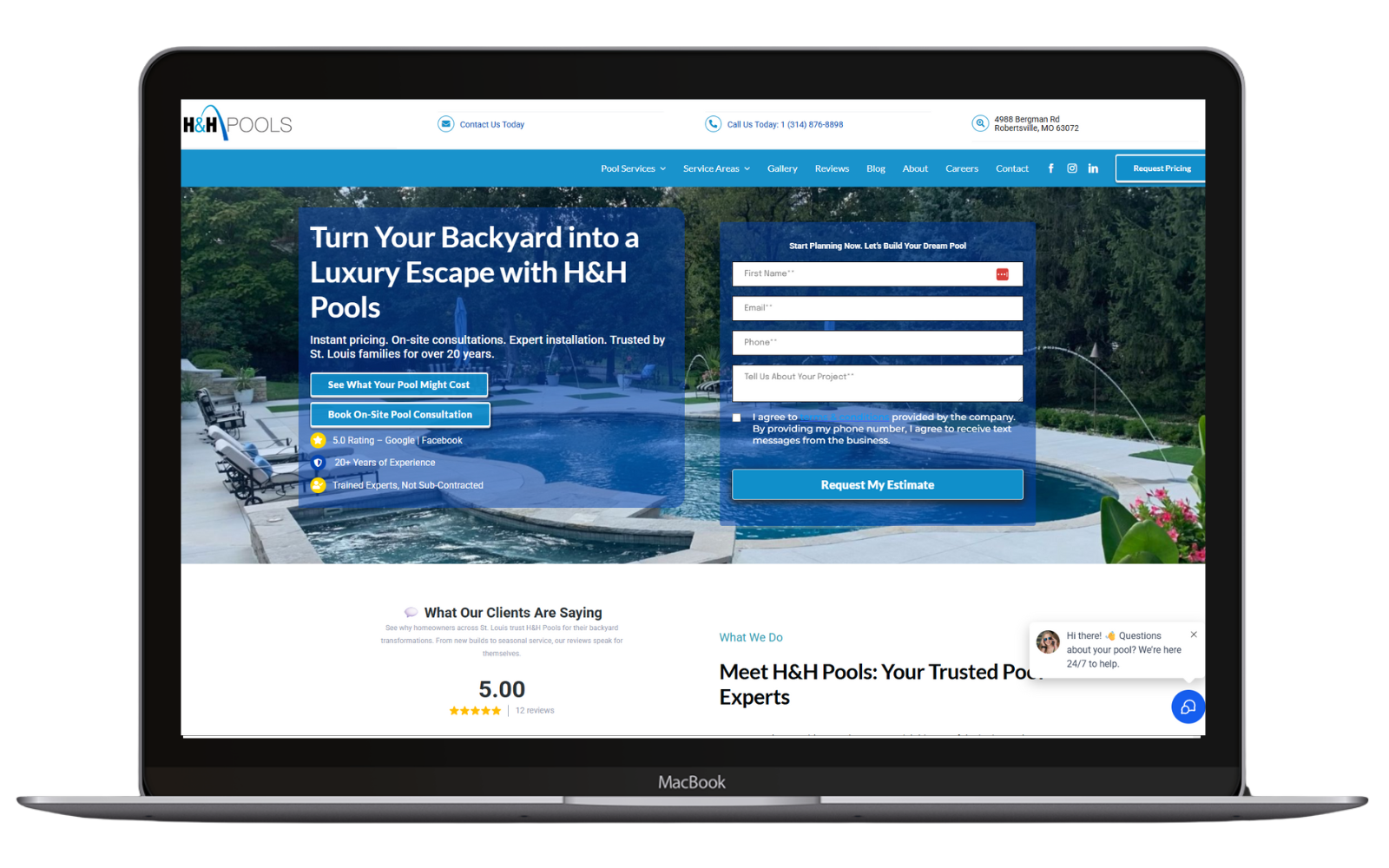 Google visibility (Maps + SEO + AI), conversion-first pages, and automated follow-up so leads don’t leak and estimates stay consistent.